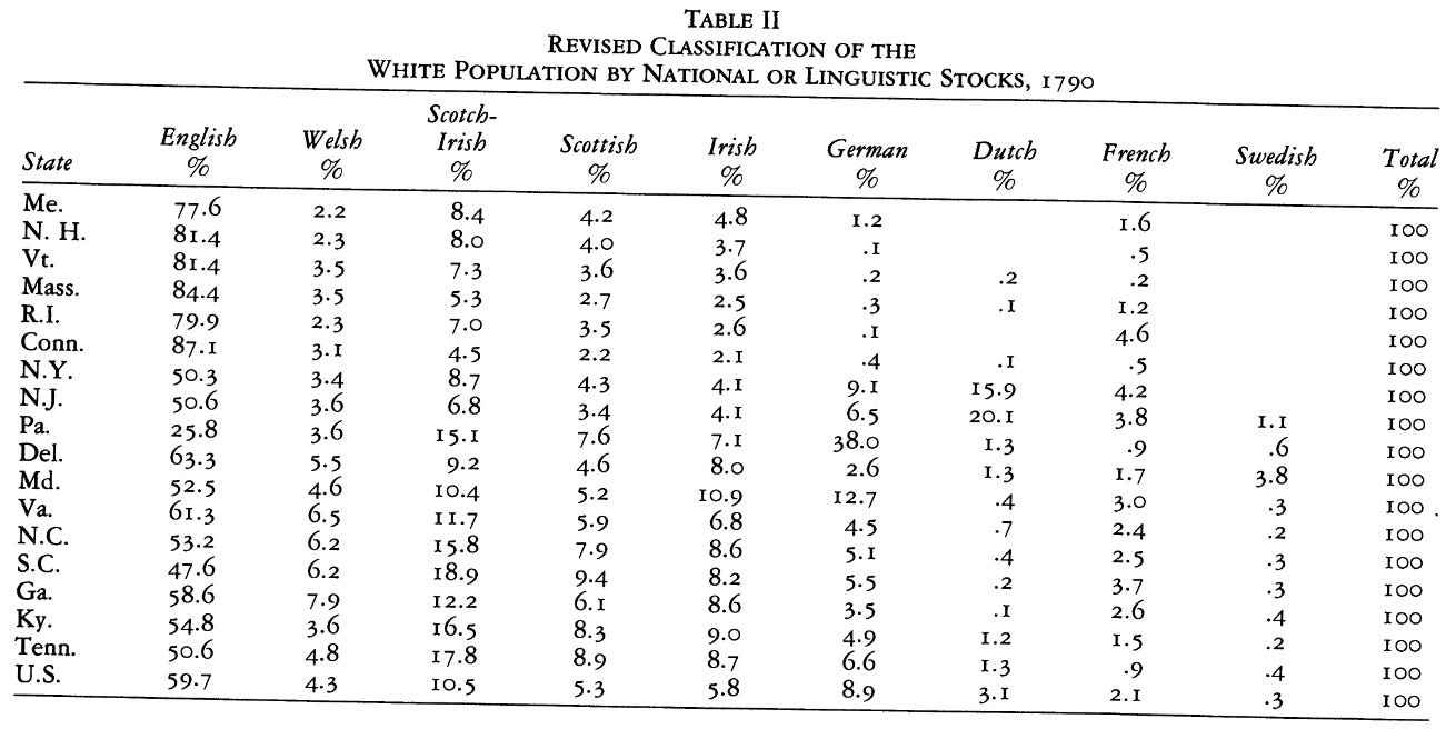 This is the furthest thing from “wildly diverse.” Most Americans were White and of British, not broadly European, origin, and that’s even factoring in the black population. Indians don’t count, since they weren’t Americans, and neither do the Spaniards, since they were of a whole different country.1